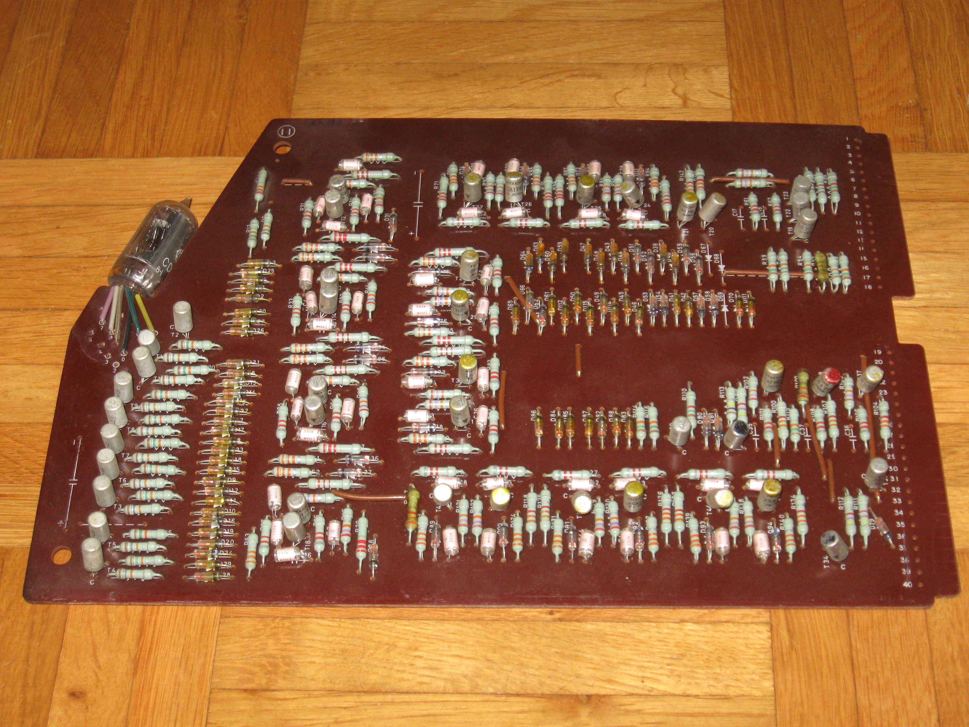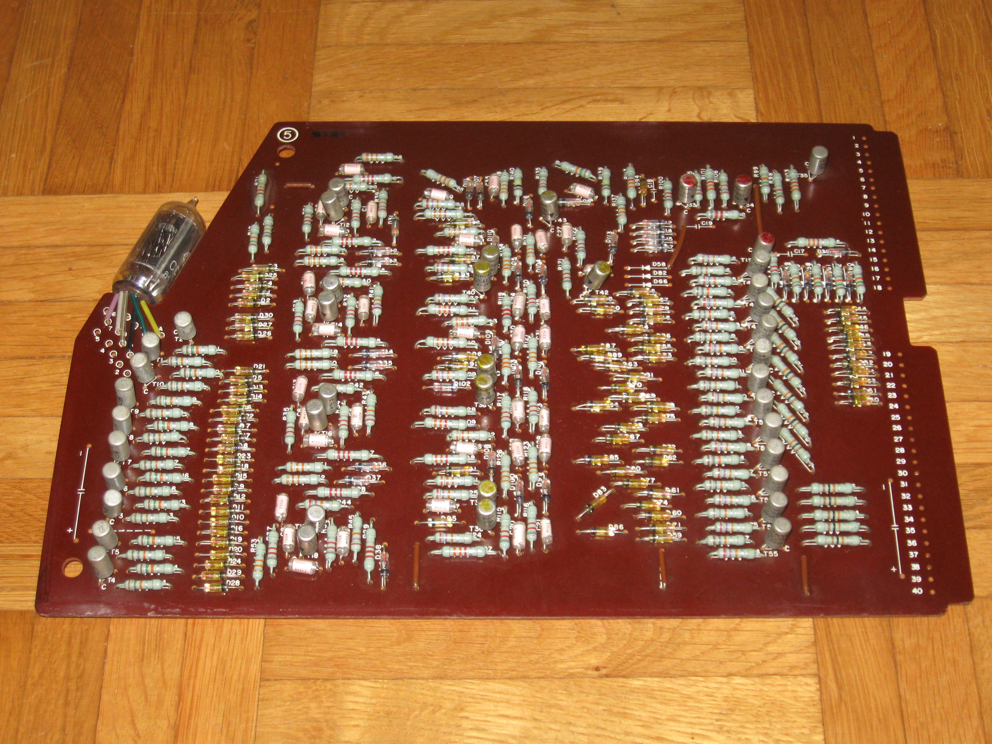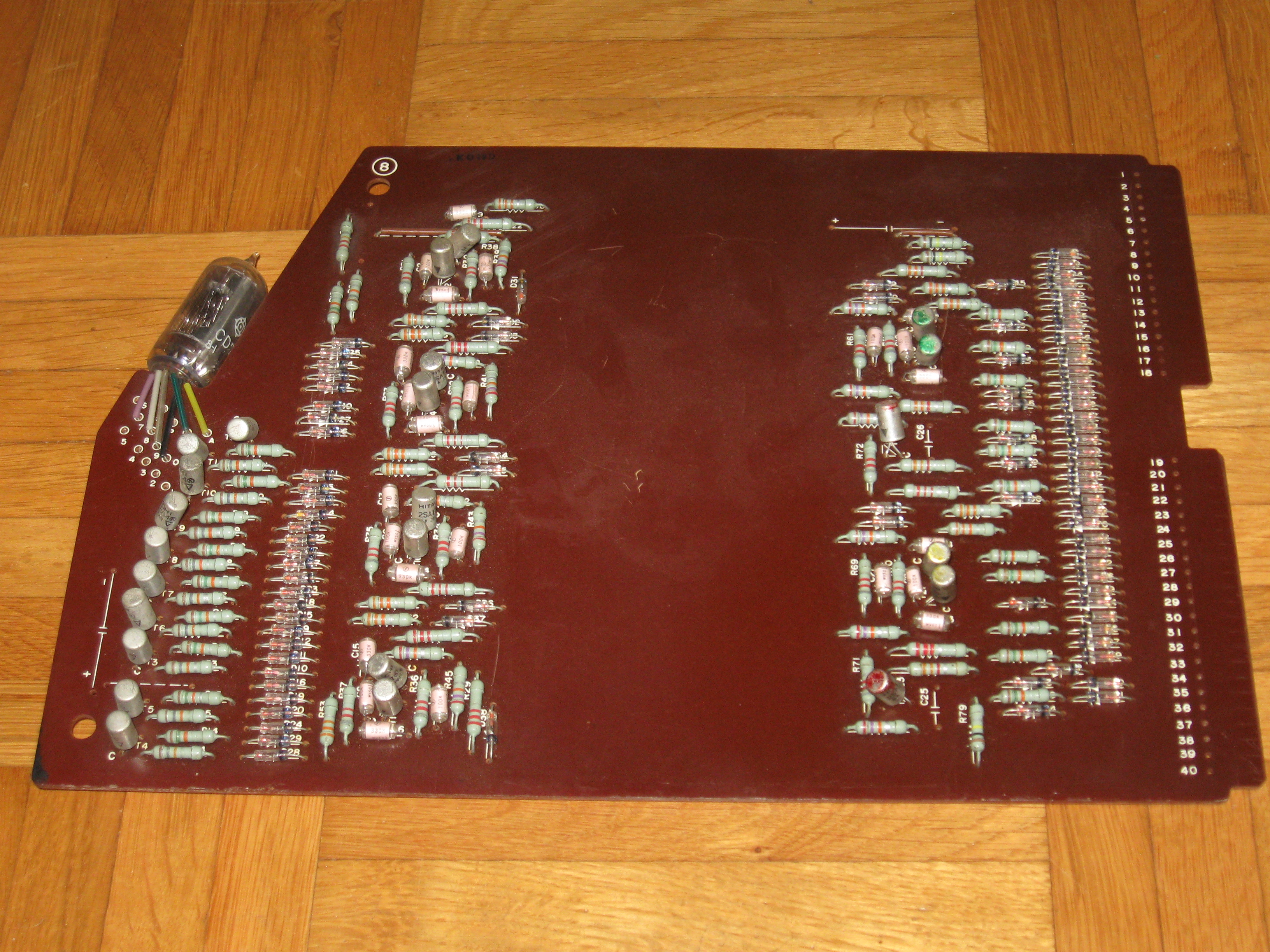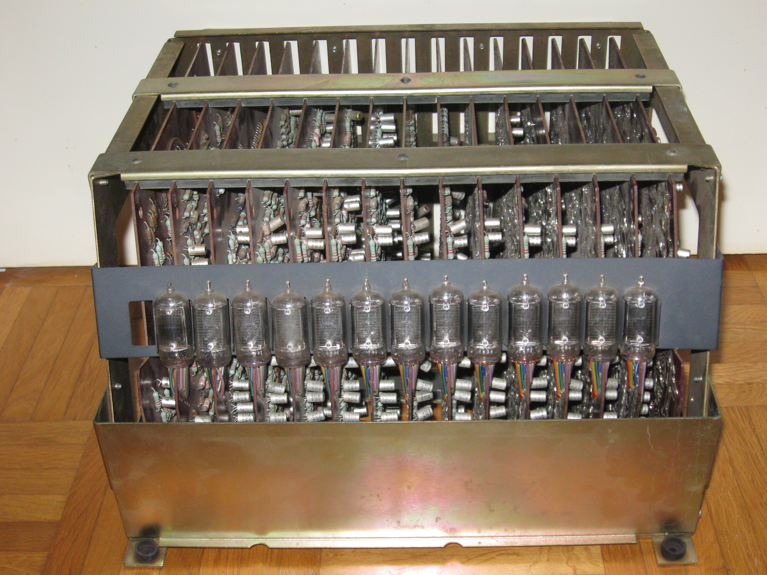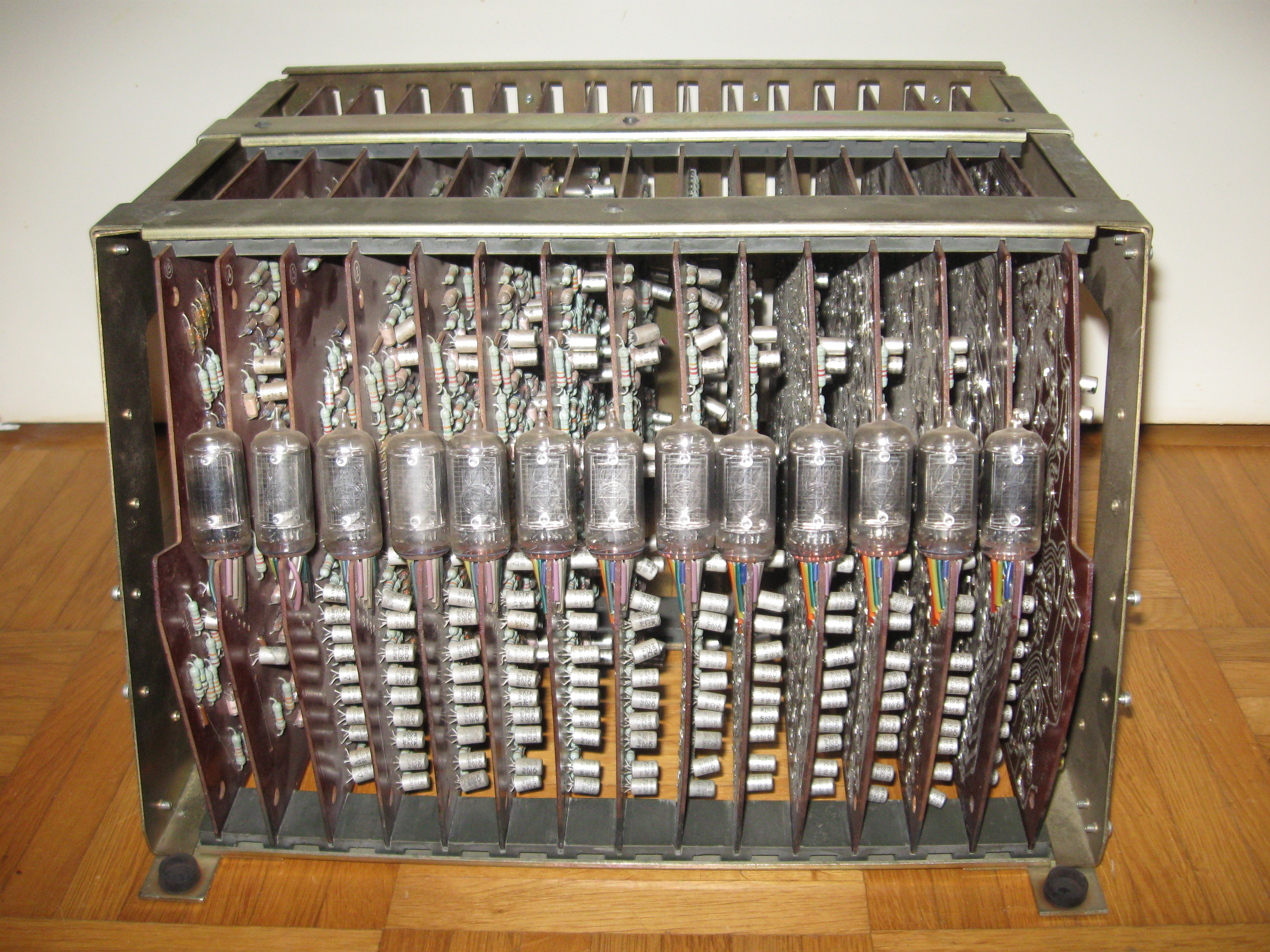 This is what's left of my Friden 1112. I took it apart a very long time ago to use the case for a micro processor system. I should not have done that;-) For half the boards I drew the schematics. Maybe someday I will finish it... | ||